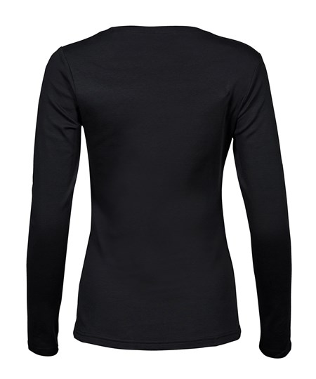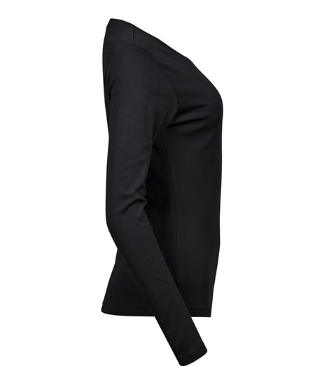 Ein einzigartig geschnittenes, langärmeliges Damen T-Shirt aus Interlock-Gewebe. Dank seines soliden Gewebes und seiner taillierten Passform wird dieses T-Shirt sofort zum Lieblingsstück jeder Garderobe.