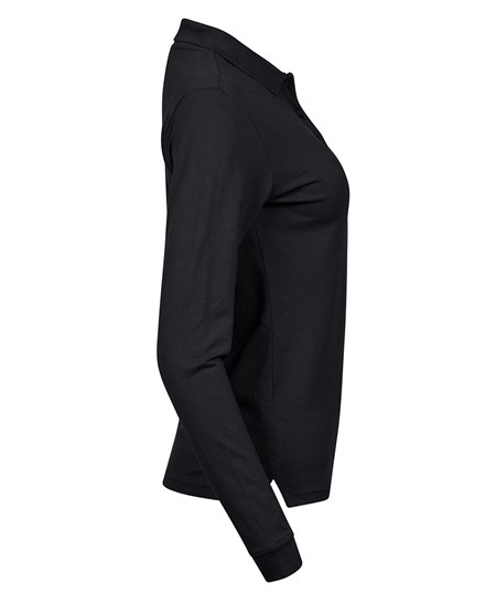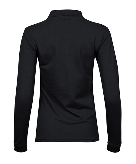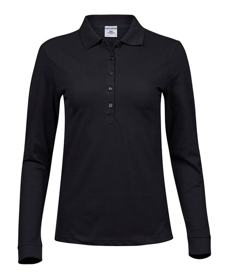 Dieses edle, langärmelige Damen Stretch-Polo wurde aus zertifiziertem Bio-Baumwoll-/Elasthan-Mischgewebe gefertigt und überzeugt dank seines Mini-Piqué-Gewebes mit idealer Passform, während der flache Strickkragen mit Elasthan für einen Hauch Eleganz sorgt. Die Ärmel sind mit schmalen Bündchen mit Elasthan abgeschlossen.