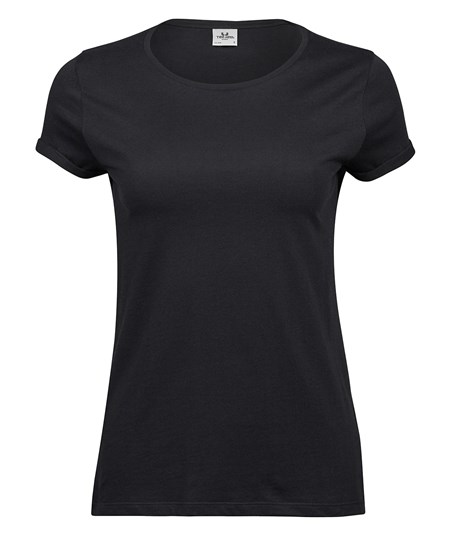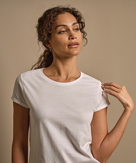 Diese modisch geschnittene Roll-up Damen-T-Shirt aus Single Jersey überzeugt mit hochwertiger, langfaseriger Baumwolle. Besonders schön sind die aufrollbaren Ärmel mit ihren Einstellriegeln und der weite Halsausschnitt mit seiner minimalistischen Rippstrickeinfassung.