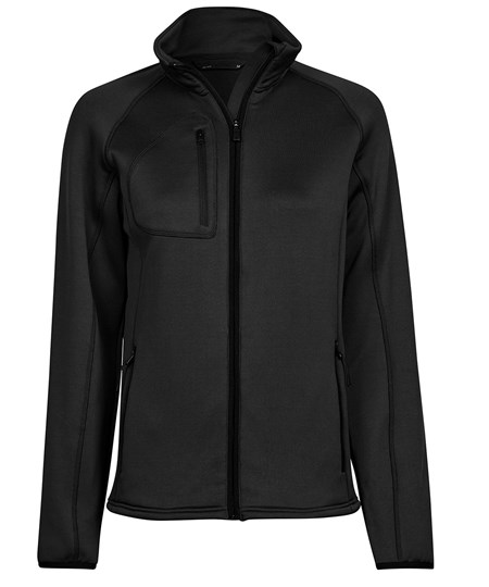Diese taillierte Stretch Fleece Midlayer-Damenjacke ist das ideale Kleidungsstück, das Sie bei zahlreichen Outdoor-Aktivitäten warm halten wird. Aus besonders weichem, auf dem Innenseite gebürstetem Premium Fleece-Gewebe mit Elasthan. Sie ist mit zwei großen Taschen auf der Vorderseite, einer Brusttasche, einem Kinnschutz, elastischen Bündchen und einem Saum ausgestattet. Ideal als Midlayer- oder Funktionsjacke.