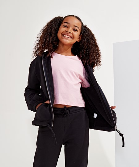 Kids TriDri® recycled cropped oversize full-zip hoodie