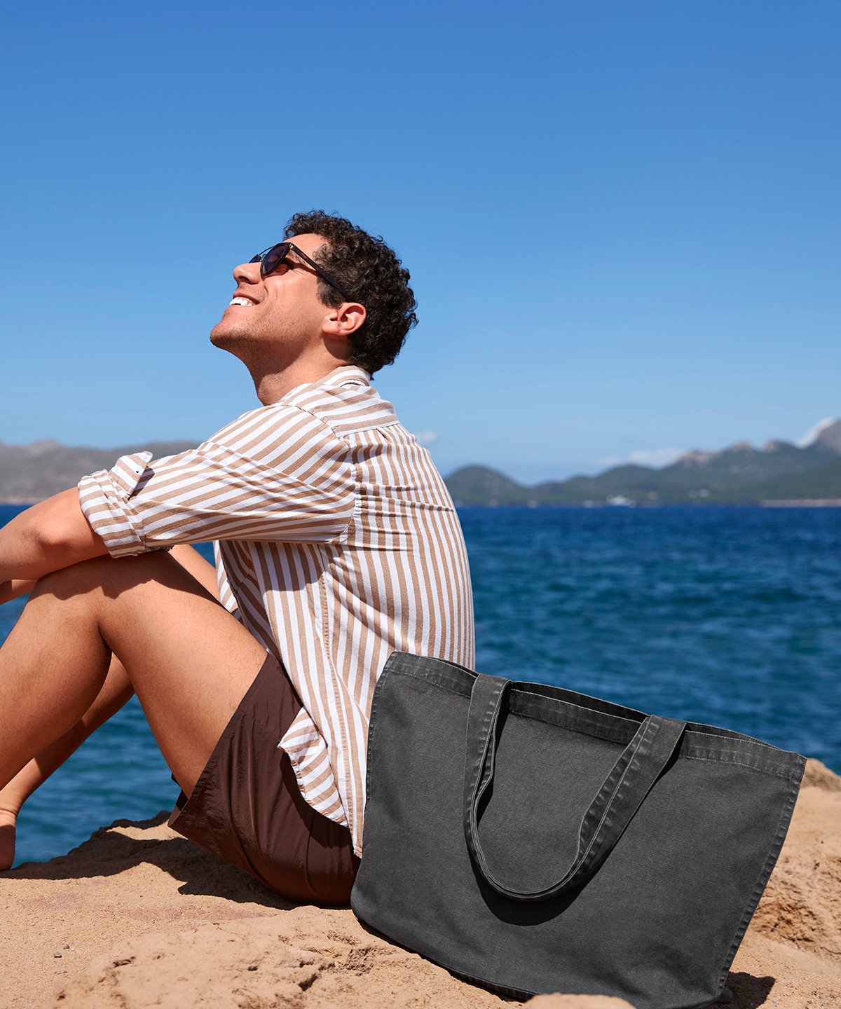 Die Kleidungsgefärbte Shopper vereint lässigen Stil mit praktischer Alltagstauglichkeit. Mit ihrem stonewashed Finish und einem geräumigen, ovalen Design ist sie ideal für den Transport von alltäglichen Utensilien. Erhältlich in einer Reihe von gewaschenen, zeitlosen Tönen und sanften Pastelltönen, ist sie eine vielseitige Wahl für jede Gelegenheit. Dank des aufwändigen Färbeverfahrens ist jede Farbe einzigartig.