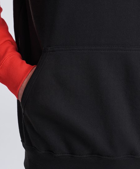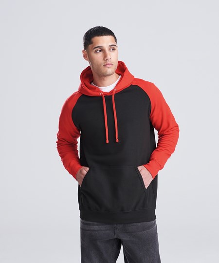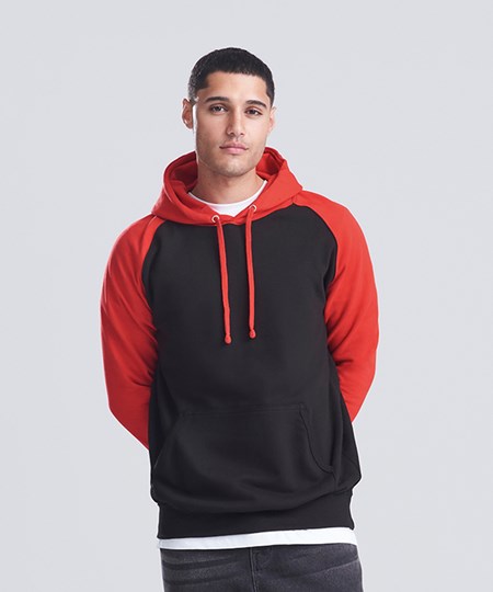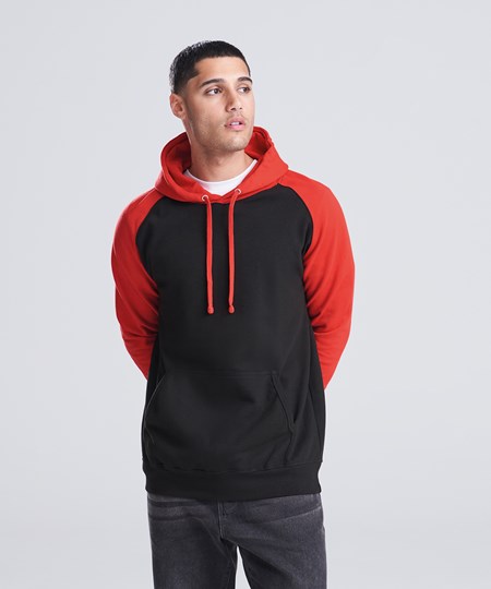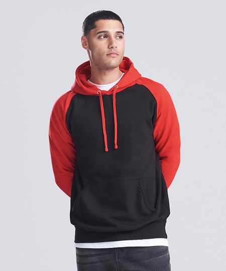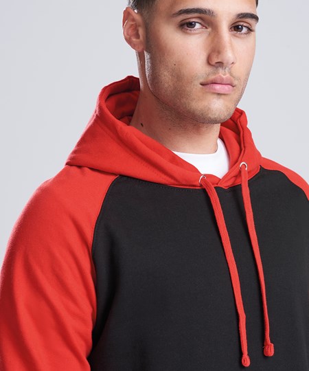 Enhance your casual wear wardrobe with this versatile raglan sleeved hooded sweatshirt which features contrast sleeves, hood and drawcords. A sporty and stylish must have.