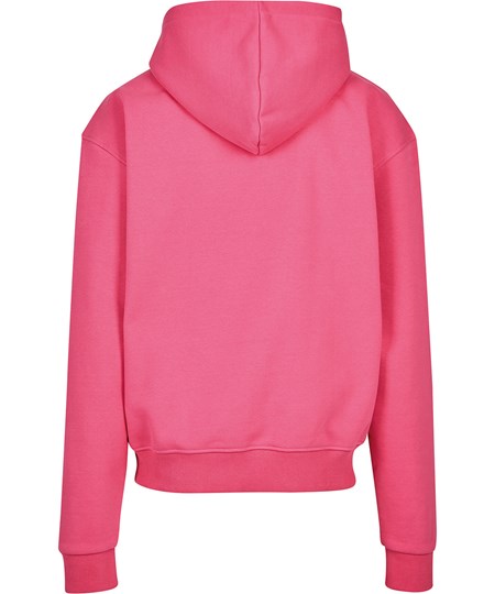 The men's hoodie features a large hood and wide rib cuffs on the sleeves and hem. The integrated kangaroo pockets add a practical touch. A casual urban fit with dropped shoulders creates a masculine silhouette. The men's hoody is made of smooth and heavy brushed fleece, which can be further refined using flex or screen printing.