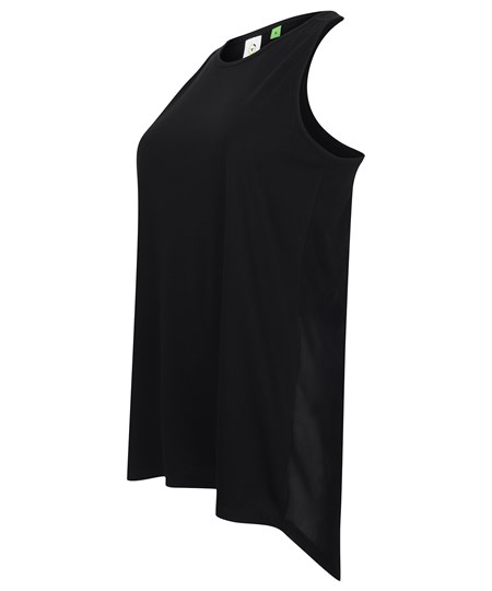 This women's open back vest mixes innovation and style to create the perfect garment for both working out and hanging out. The long back with split can be worn open or tied up for maximum versatility.