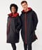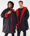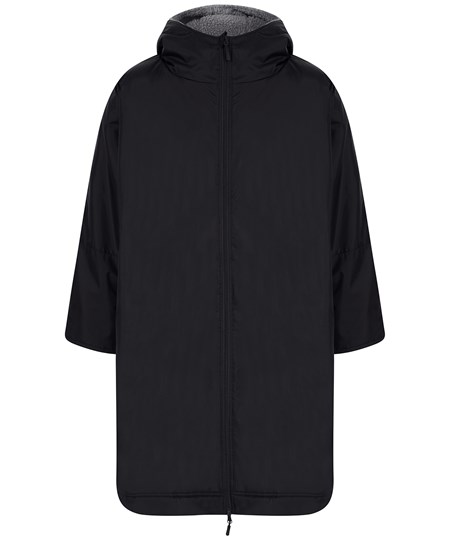 The ultimate team robe is made in a water-resistant fabric with a cosy sherpa fleece lining and three-piece hood. One size fits all, the roomy fit with double-ended full front zip allows wearers to keep warm and get changed underneath the robe. Perfect for wild swimming or wearing on team sidelines. Zipped pockets with fleece lining keep hands warm with multiple inner pockets for keeping belongings safe. Topped off with a large embroidery zip for access to directly decorate.