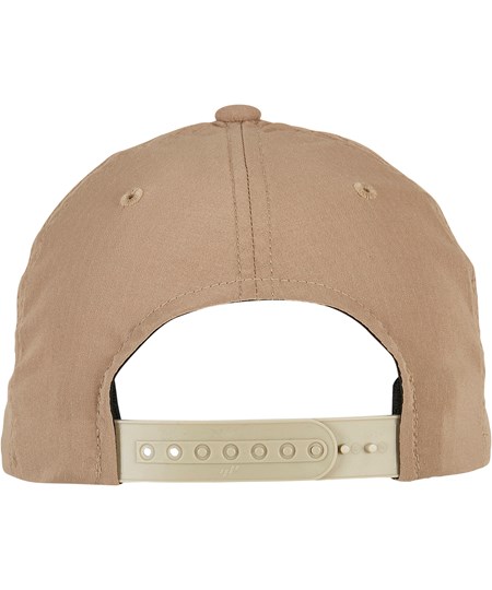 This cap is made from a dense, ripstop material and has a curved visor with decorative seams. The snapback closure makes individual size adjustment easy. Made from polyester in one size.
