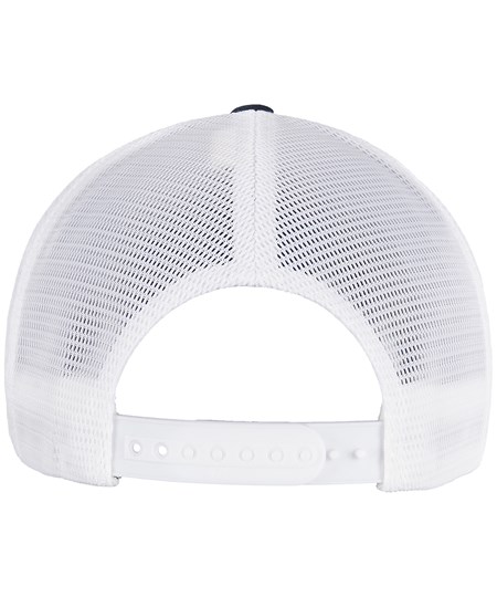 This trucker cap offers a time proven, dual design: its front is made from cotton, the back from transparent, white polyester mesh. Thanks to the smart, integrated technology the cap guarantees optimal wearing comfort: next to the Flexfit ribbon a colour-matched snapback closure stands ready for individual size adjustment. The trutker cap style is rounded off by a pre-bent visor with eight decorative seams.