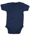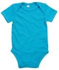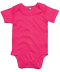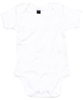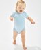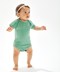 Body bébé super-souple avec encolure style enveloppe, reliure sur les bords pour la retention de la forme et boutons à pression sur les jambes pour faciliter l'habillage