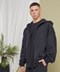 Doté d’une coupe oversize avec des épaules fortement tombantes, d’une capuche extra-large et d’une poche kangourou divisée, le sweat à capuche zippé pour homme est un hommage à l’ambiance des années 90. Le style est complété par de larges poignets côtelés sur les manches et l’ourlet. Le pull zippé est fabriqué en éponge de coton épais, qui peut être affinée par une sérigraphie d’impression flexible.