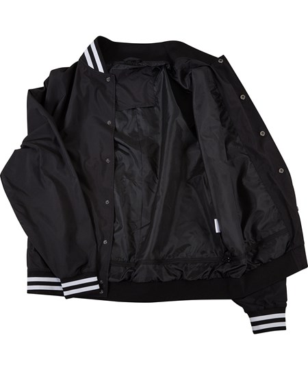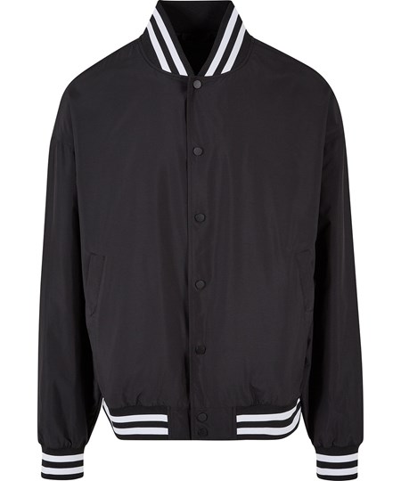 Cette veste universitaire pour homme de style traditionnel est un classique sportif avec un col montant rayé et des poignets élastiques sur les manches et l’ourlet. Il présente une coupe décontractée et ample avec des épaules tombantes, se fermant par une patte de boutons-pression. La veste universitaire légère est fabriquée à partir d’un tissu en polyester robuste et peut être affinée avec une sérigraphie ou une impression flexible.