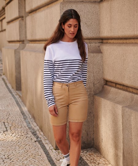 La quintessence de l’élégance décontractée - la gamme chino stretch de Front Row. Pour les équipes, les clubs et les tenues de travail. Pour les marques qui cherchent à mettre leur nom sur des vêtements de qualité. Pour les insouciants. Pour les jeunes d’esprit. Pour ceux qui travaillent dur et qui s’éclatent. Ce short chino ventre plat est fait de coton sergé stretch de qualité et délavé pour une finition confortable. Conçu avec fermeture éclair YKK et ceinture boutonnée. Sans étiquette pour un changement de marque facile. Des vêtements de loisir superbes. Créés avec soin. Peut être combiné au FR605 pour hommes et au FR622 chino stretch pour femmes.