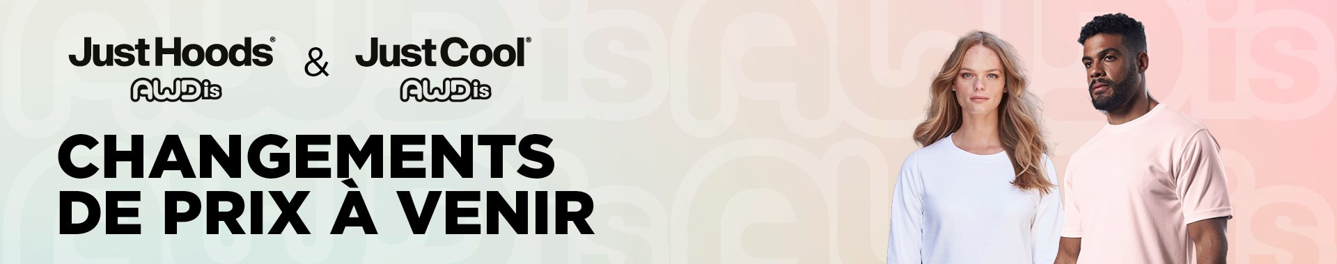 Les marques concernées par ces changements sont AWDis Just Hoods et AWDis Just Cool.