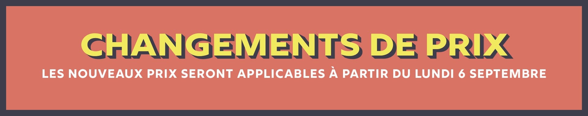 Les changements de prix seront appliqués le lundi 6 septembre 2021.