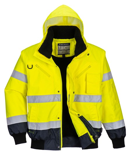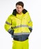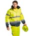 Bande réfléchissante argentée de 2", imperméable avec des coutures étanches, manches amovibles, col et doublure en fourrure, poignets et taille côtelés, capuche repliable réglable et poches : 1 poche pour téléphone portable, 2 poches poitrine, 2 poches intérieures soudées, 1 poche sur la manche et 2 poches plaquées à rabat avec une fermeture éclair et des boutons-pression