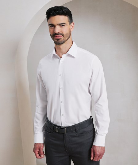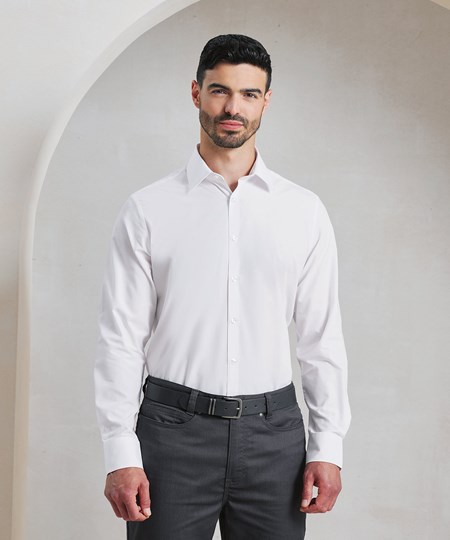 Créée avec des matériaux à moindre impact, cette chemise popeline pour homme, best-seller, est désormais disponible dans un mélange de polyester recyclé certifié et de coton. Elle offre les mêmes excellentes propriétés d'entretien facile que notre popeline classique, mais est fabriquée dans un poids plus lourd et a une forme plus ajustée. Un col formel renforcé avec fermeture à bouton supérieur en fait une chemise élégante avec la possibilité de la porter col ouvert pour un look plus décontracté. Un poignet à double bouton avec trou pour boutons de manchette et une patte de manche à bouton unique facilitent une option de retroussage. Conçue avec des pinces au dos pour améliorer l'ajustement et la forme. Une excellente chemise de travail pour homme, facile à entretenir au quotidien.