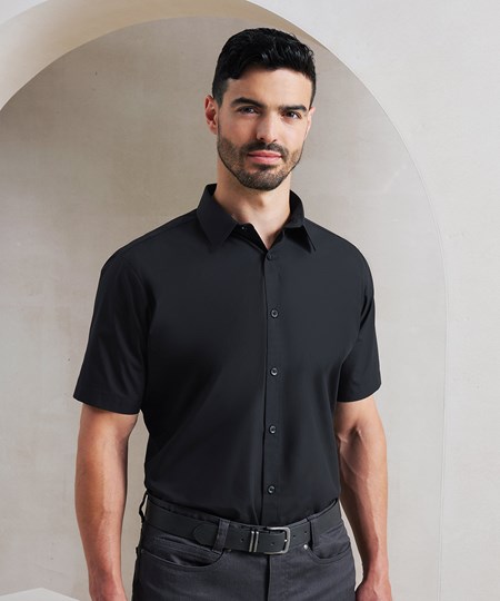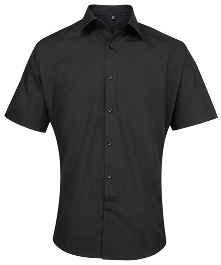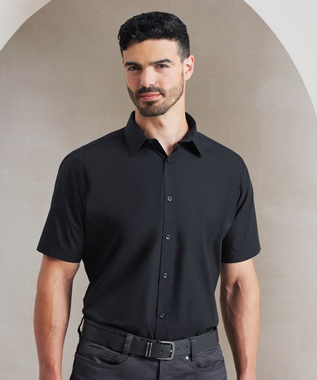 Une chemise en popeline à manches courtes taillée dans un tissu plus épais pour une durabilité améliorée. Le style semi-ajusté donne une allure à la mode, tandis que le col rigide est mis en valeur par une cravate unie ou à motifs.