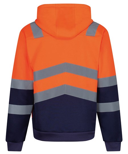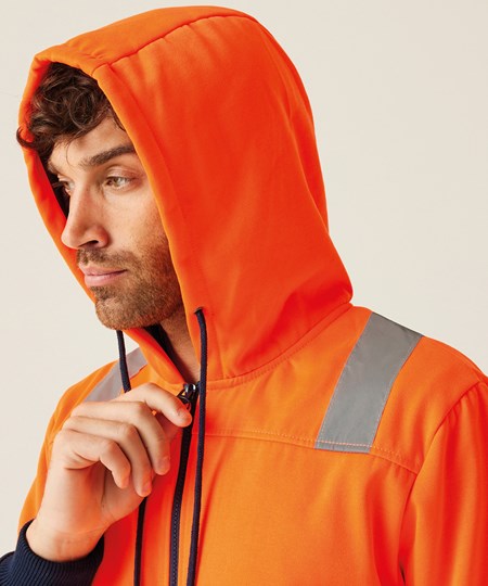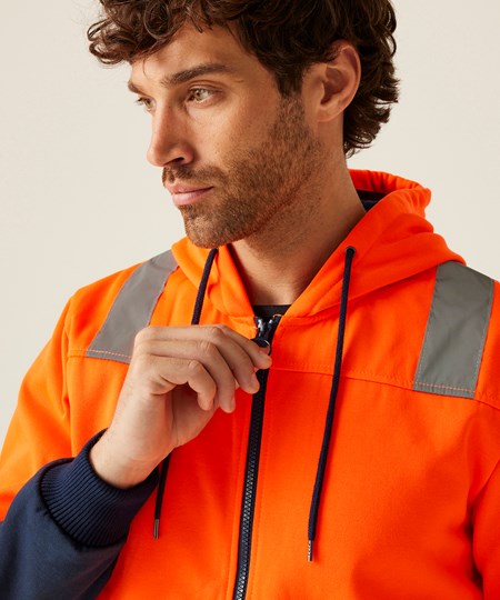 Restez visible dans ce sweat à capuche haute visibilité. Ce sweat à capuche est fabriqué dans un mélange en polycoton pour plus de confort et de durabilité. Mettez la capuche pour mieux vous protéger. Le sens des flèches en chevron à haute visibilité indique dans quelle direction vous avancez en cas de faible luminosité. Conforme à EN ISO 20471:2013 +A1:2016 Classe 2 (orange également conforme au RIS-3279/TOM)