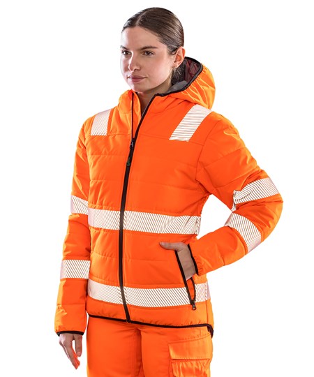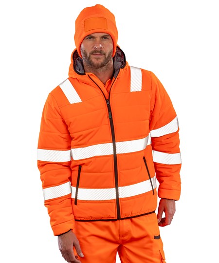 Robuste, chaud et recyclé: veste de sécurité matelassée, imprimable avec une capuche et finition déperlante.
