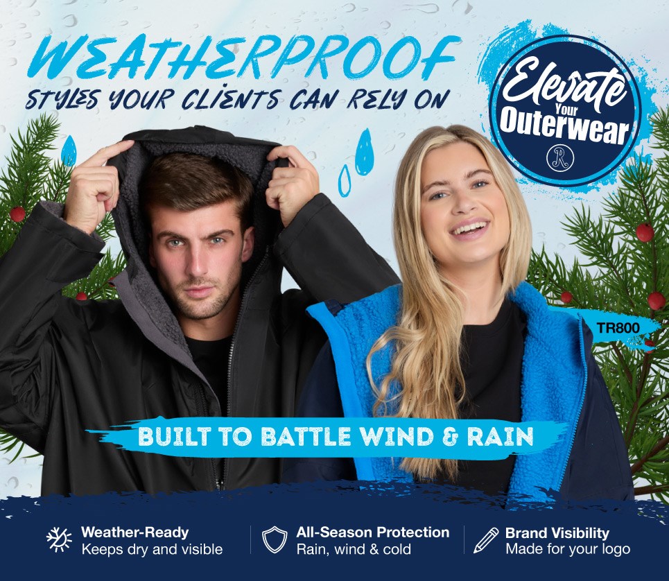 This week focuses on outerwear and accessories designed to take on the elements. From windbreakers and rain-resistant layers to full rain suits, ponchos, and umbrellas, we’re showcasing practical solutions that keep branding visible and your clients protected, whatever the weather.