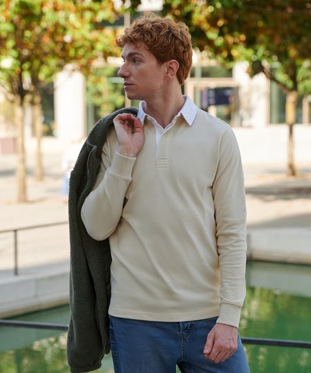 Get your hands on the Premium superfit rugby shirt. This slim fit shirt has a peached fabric for a super-soft finish. There is plenty of space for decorating opportunities and it's tag free for easy rebranding. It has a traditional woven rugby collar with zigzag stitching detail under collar and contrast striped tape in the back neck and side vents. Carefully chosen fabrics and clever detailing characteristic of Front Row.