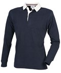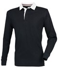 Get your hands on the Premium superfit rugby shirt. This slim fit shirt has a peached fabric for a super-soft finish. There is plenty of space for decorating opportunities and it's tag free for easy rebranding. It has a traditional woven rugby collar with zigzag stitching detail under collar and contrast striped tape in the back neck and side vents. Carefully chosen fabrics and clever detailing characteristic of Front Row.