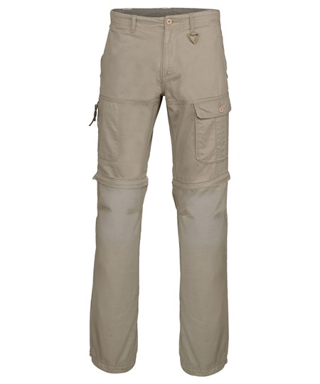 100% cotton twill. Enzyme-washed. Zip fastening with stud. 4 front pockets. 3 rear pockets. Zip off trouser legs to Bermuda shorts. Plastic ring at belt loop. This product has been specially treated and appears intentionally aged. This manufacturing process results in colour variations between products and makes each piece unique.