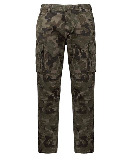 98% cotton / 2% elastane. Twill fabric with soft peached finish. Zip fastening and concealed metal button. 2 front pockets. 2 gusseted side pockets with flap. 2 back pockets with flap. This product has been specially treated and appears intentionally aged. This manufacturing process results in colour variations between products and makes each piece unique.
