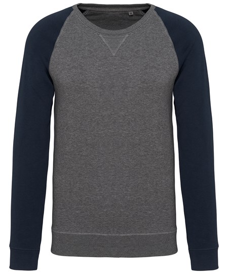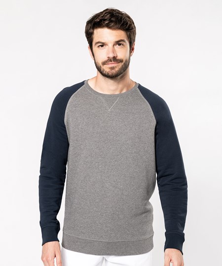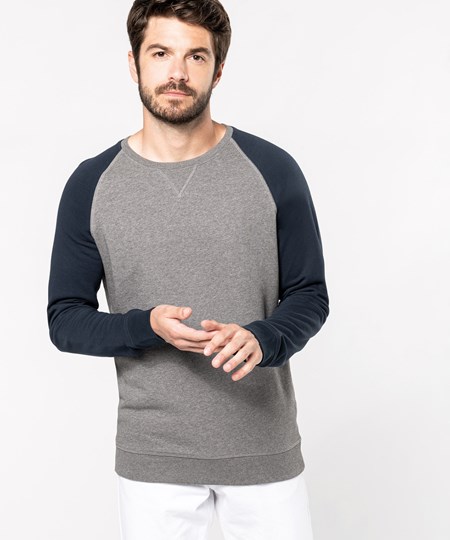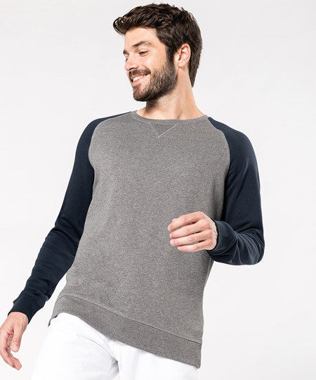 Men's two-tone organic crew neck raglan sleeve sweatshirt