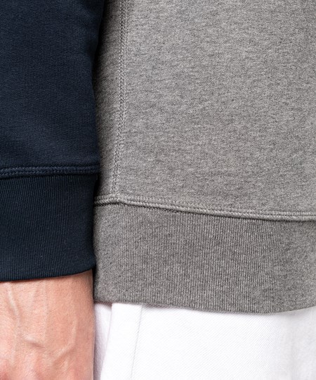80% cotton / 20% polyester. Made from 80% organic cotton. French terry fleece. LST (Low Shrinkage Terry). Ribbed neck, cuffs and hem. Herringbone twill taped neck. Stitched V detail at front neck. No brand label at neck, only size tag for easy relabelling. Certifié STANDARD 100 by OEKO-TEX®N° CQ1007/7, IFTH.