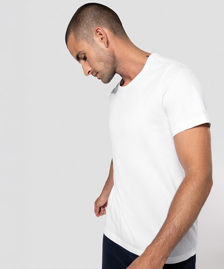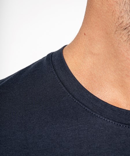 100% enzyme-washed combed cotton (Oxford Grey : 90% cotton /10% viscose). Fitted style. Neck tape (Oxford Grey neck tape for all colours, except for White body where neck tape is White and Oxford Grey body where neck tape is Dark Grey). Twin needle finishing at the cuffs and hem. Certified STANDARD 100 by OEKO-TEX®N° CQ1007/7, IFTH.