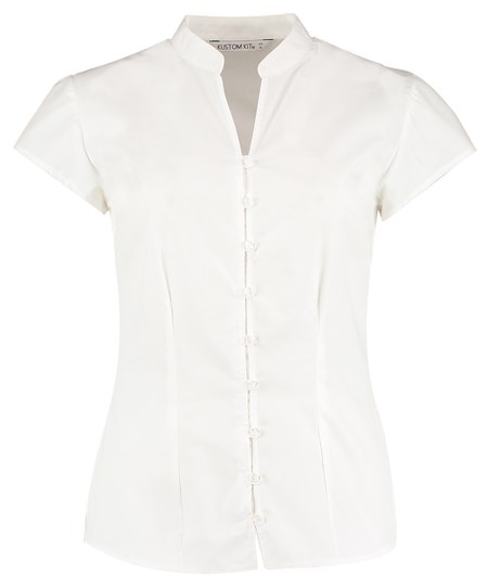 Women's continental blouse mandarin collar cap sleeve (tailored fit)