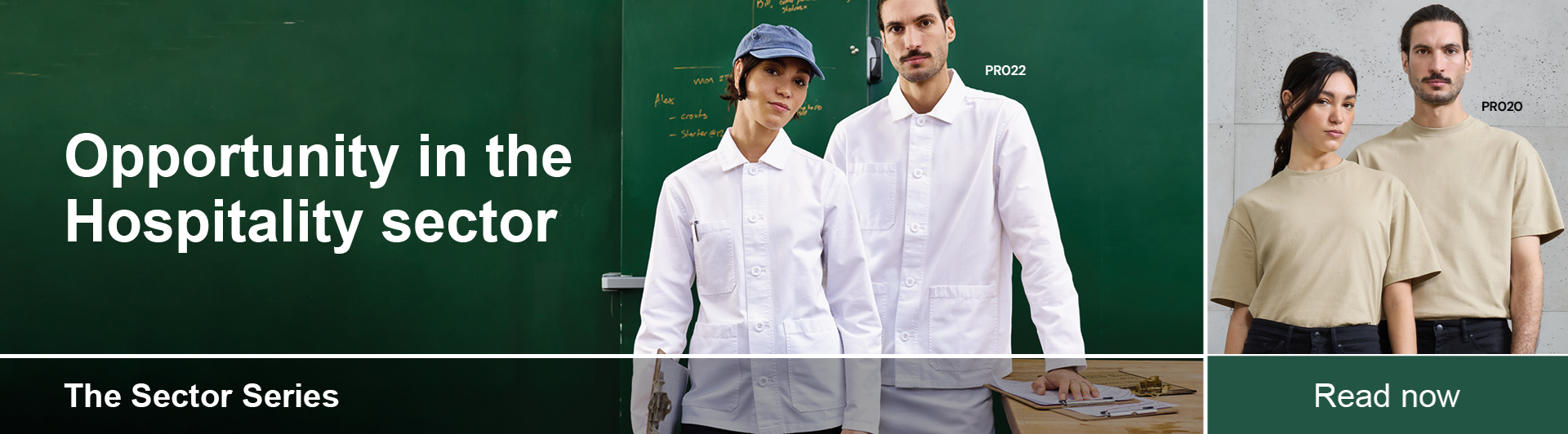 Reliable, recurring revenues. Hospitality is where service meets front-of-house style. From boutique hotels to stadium catering, chic independent restaurants to well-known pub chains, the Hospitality sector is all about apparel that both works hard and delivers an identity.