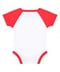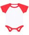 Retro styling baseball bodysuit with contrast sleeves and binding on neck and leg opening. YKK popper fastening at bottom for ease of access and size tab only for easy relabelling.