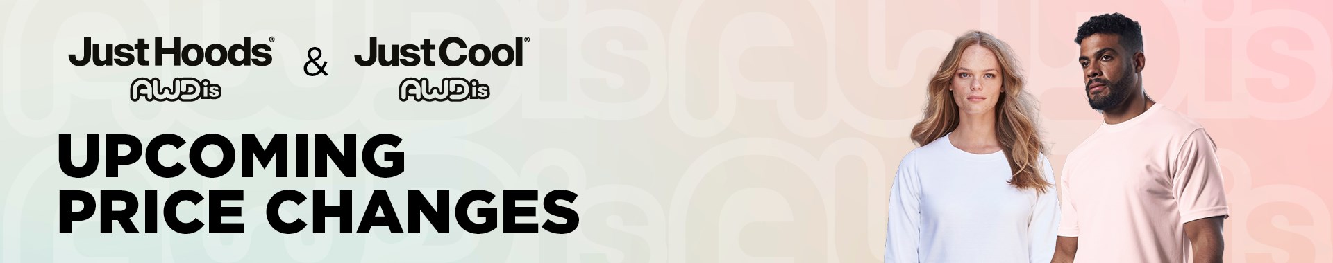 Selected styles from AWDis Just Hoods and AWDis Just Cool are affected.