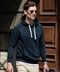This modest yet fashionable hooded sweatshirt is made from a comfy, organic, cotton-rich blend. The understated design, with rugged drawstrings, means its suitable for a variety of occasions, while elegant detailing, such as the double-layer hood, allows for pairing with more formal apparel. The brushed fleecy lining and short-shave treatment creates a long-lasting feel of luxury.