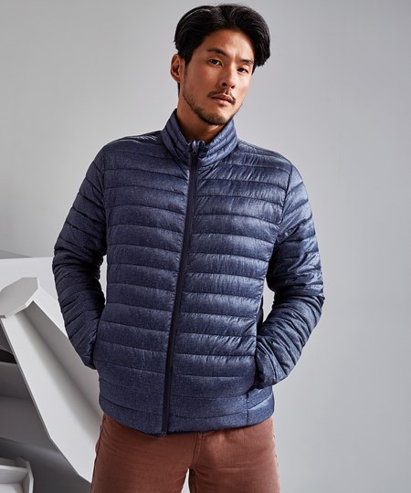 De gemêleerde gewatteerde jas is een eigentijds ontwerp met een buitenzijde met gemêleerd effect en een lichtgewicht vulling voor een betrouwbare gewichtloze isolatie. Deze opvallende gewatteerde jas is netjes gestyled met voorzakken met ritssluiting en elastische bindingen aan de onder- en zijkanten om de elementen af te dichten.