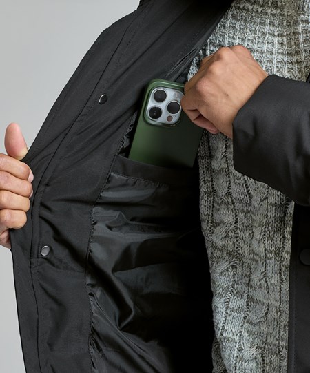 De gerecyclede, gelijmde, gewatteerde jas met lange pasvorm is perfect voor buitenavonturiers of hardwerkende professionals. Het verlengde silhouet biedt extra bescherming en zorgt zo voor veelzijdigheid bij verschillende activiteiten. De jas zit boordevol snufjes om warmte vast te houden, en heeft een verwijderbare capuchon die gemakkelijk aangepast kan worden aan veranderende weersomstandigheden. Dankzij de professionele afwerking en gelijmde tussenstukken is deze jas zowel stijlvol als functioneel.
