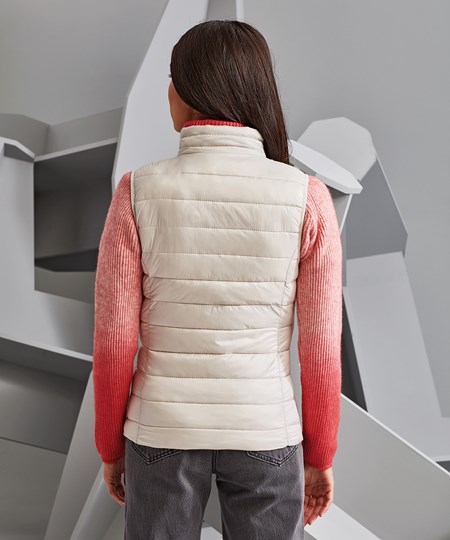 Deze stijlvolle bodywarmer met een lichte opvulling en aansluitend model is perfect voor het koelere weer van dit seizoen. Deze veelzijdige gilet kan over een t-shirt, polo of sweater worden gedragen, waardoor het een onmisbaar kledingstuk is in iedere damesgarderobe.