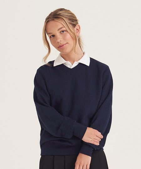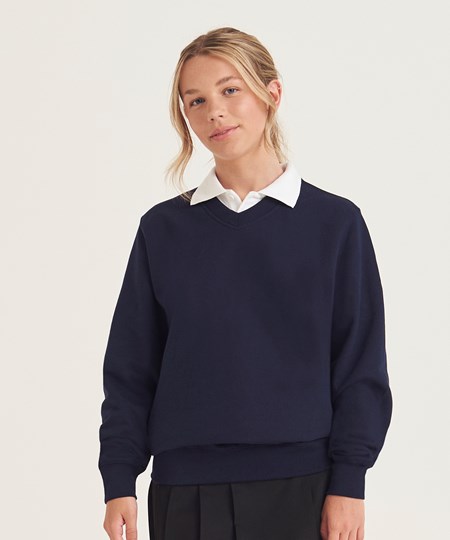 Ons sweatshirt met V-hals is ideaal voor elk schoolseizoen en is gemaakt met dubbeldraads gestikte stiksels voor duurzaamheid.