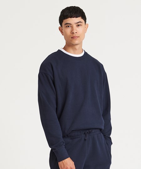 Deze sweater is gemaakt van een zachte stof van gecertificeerd gerecycled katoen en gecertificeerd gerecycled polyester met een ontspannen boxy pasvorm. Door stijl, comfort en materialen met minder impact te combineren, is deze sweater een geweldige aanvulling op een uniform, winkelcollectie of club.