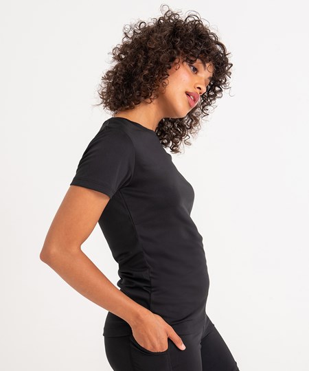 Deze gestructureerde sport-T is gemaakt van gecertificeerd gerecycled polyester, waardoor de milieubelasting op de planeet wordt verminderd. Het zachte gevoel en de sportieve pasvorm doen alles wat je normale sporttop doet, maar meer.