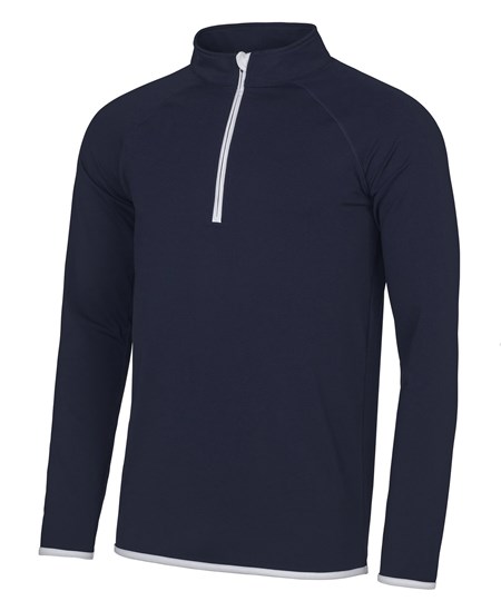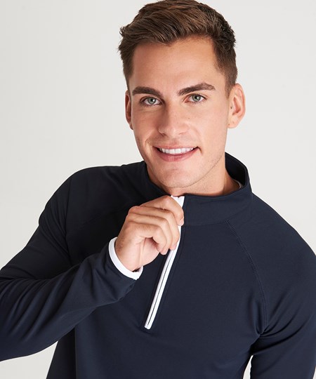 Blijf warm en comfortabel in dit CoolFit™-sweatshirt met halve ritssluiting dat ideaal is voor laagjes. Een nauwsluitende pasvorm in dezelfde stof, contrasterende ritssluiting, manchetten en zoom. De raglanmouwen creëren bewegingsvrijheid en er is zelfs een reflecterend label aan de nek om de snoeren van je oortelefoon op hun plaats te houden, zodat je naar je favoriete afspeellijst kunt luisteren om gemotiveerd te blijven.
