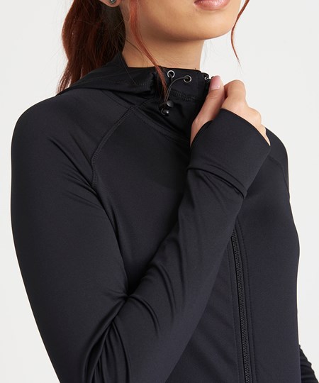 Wanneer de avonden wat koeler worden en u iets warms nodig heeft op weg naar de sportschool, biedt de Girlie Cool Contrast Zoodie uitkomst met vochtafvoerende eigenschappen en licht geruwde stof op de romp. De verstelbare, vaste capuchon beschermt tegen de elementen terwijl de raglanmouwen en duimgaten voor goede bewegingsvrijheid zorgen.
