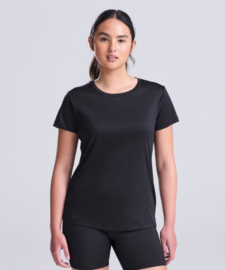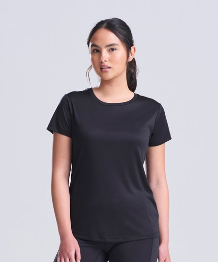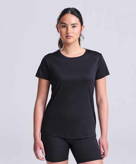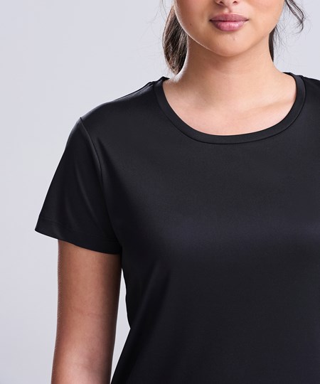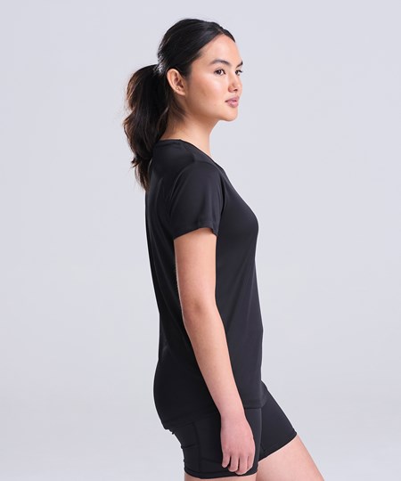 Dit T-shirt heeft een pasvorm voor meisjes en een ronde hals van hetzelfde materiaal. Het is vervaardigd uit een lichtgewicht, gladde Neoteric™ stof om u koel en comfortabel te houden, dus ideaal voor elke workout.