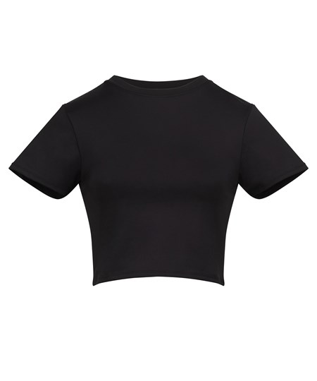 Beweeg vol vertrouwen in deze gerecyclede cropped T-shirt, met 4-way stretch, sneldrogende en vochtafvoerende stof. Ontworpen voor comfort met een aansluitende pasvorm, duurzame dubbele stiksels en een afscheurbaar label voor eenvoudige rebranding.
