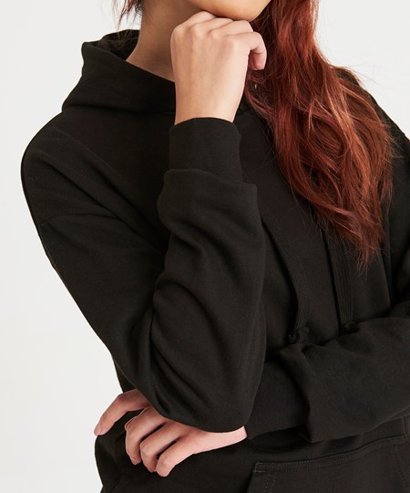 Relax in stijl met deze lange hoodie. Combineer hem met een legging of jeans voor een ontspannen look. Katoenen stof, ingezette mouwen en buidelzak.