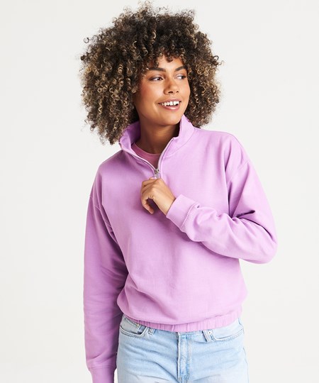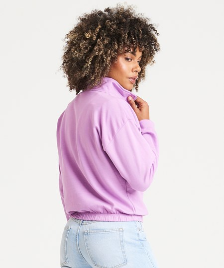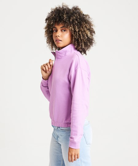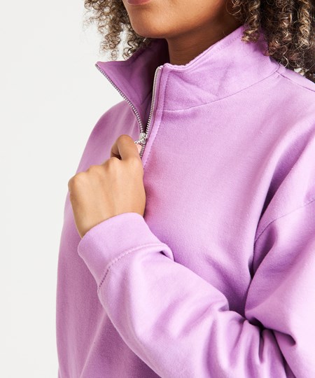 Hou het casual met dit korte, trendy sweatshirt, de 1/4-rits aan de voorkant en een trechterhals. Gemaakt van katoenrijke stof voor comfort, het hele jaar door. Combineer hem met een legging of joggingbroek voor een relaxte look overdag.