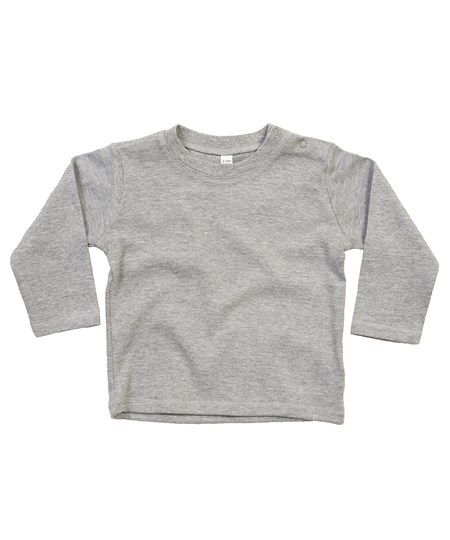 Supe zachte baby T-shirt met lange mouw met drukknopen op de schouder voor gemakkelijk aankleding.