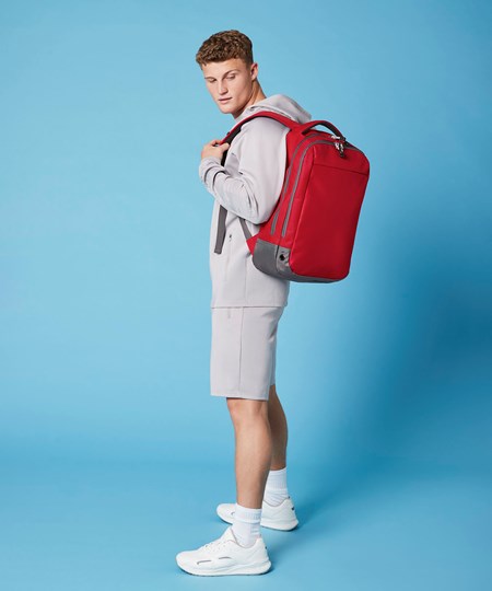 Dit ergonomische ontwerp is voorzien van een gevoerd rugpand van ademende netstof en verstelbare riemen voor dagelijks comfort. Het waterafstotende polyester materiaal biedt bescherming tegen de elementen en is verkrijgbaar in meerdere sportieve kleuren. De makkelijk toegankelijke, asymmetrische opening maakt eenvoudige decoratie mogelijk, en de houder voor draadloze oortelefoons op de schouderriem houdt uw sportbenodigdheden binnen handbereik. Het externe flesvak, het gevoerde draaghengsel en de bevestigingsclip maken dit tot het ultieme casual-sportieve accessoire.